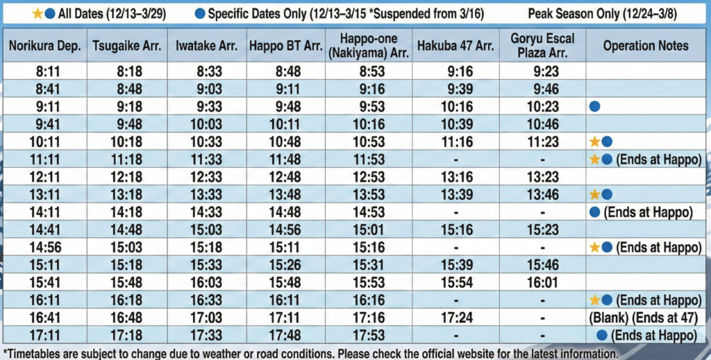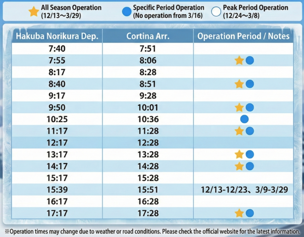 Hakuba Norikura Onsen Ski Resort Bus Stop Shuttle Bus Timetable
